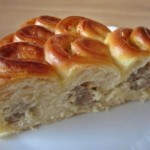 Ilık süt maya ve şeker çözülür ve 15-20 dakika kenarda mayalanır. Hamur için gerekli olan malzemelerin diğerleri de eklendikten sonra yumuşak kıvamda bir hamur yoğrulur.. Bir köşede bir saat kadar dinlendirilir.